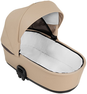 Капюшон (капор) не съемный. Имеет встроенную ручку для переноски люльки. Ручка отцентрована, что позволяет переносить люльку строго горизонтально без перекоса. В капюшоне вшит клин из москитной сетки, закрытый отворотом. Капюшон имеет 2 положения регулировки при помощи двухстороннего кнопочного механизма, внутренняя отделка — 100% хлопок.