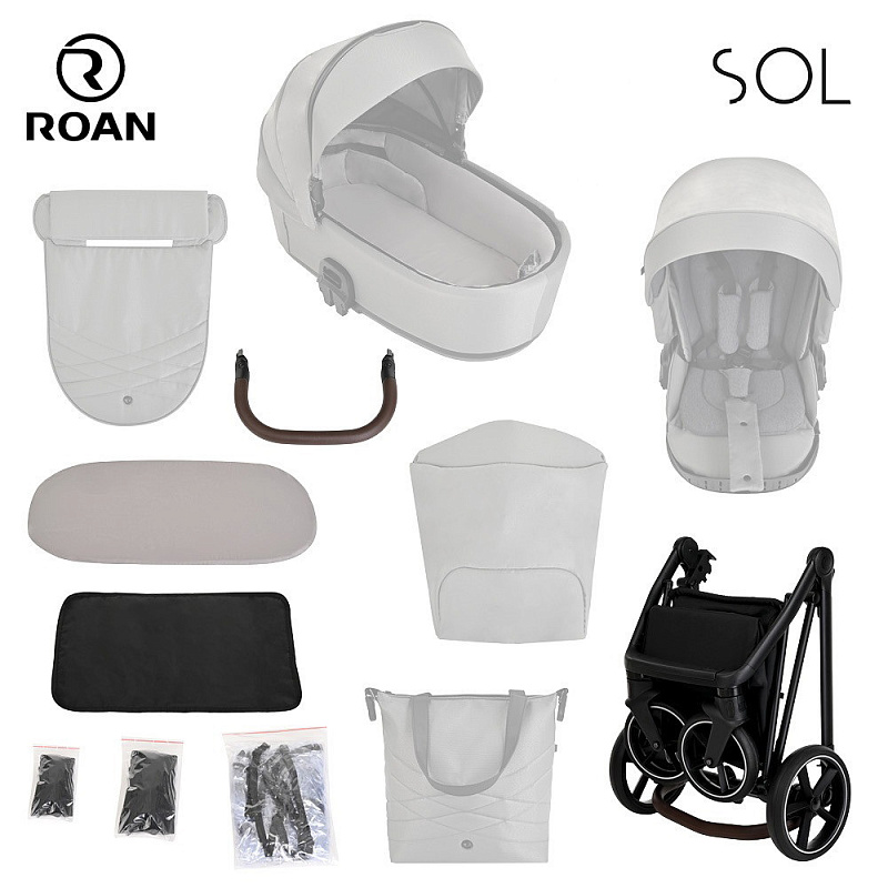 Многофункциональная модульная коляска Roan SOL– это детская коляска высокого качества в идеальном исполнении, которое заметно с первого взгляда.