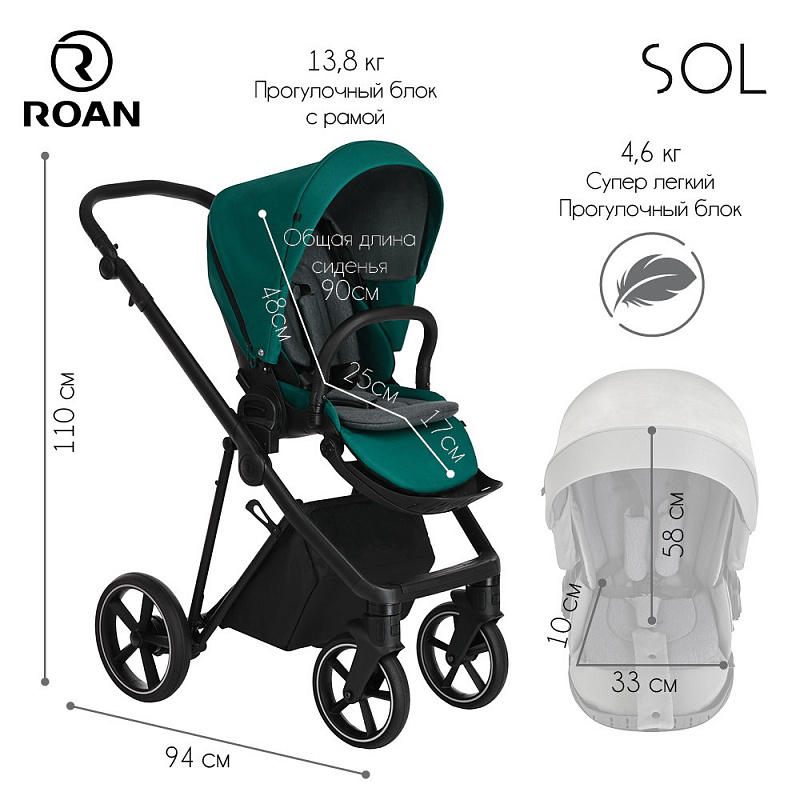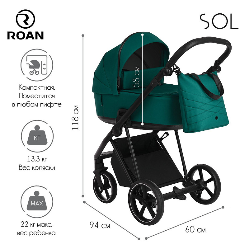 Многофункциональная модульная коляска Roan SOL– это детская коляска высокого качества в идеальном исполнении, которое заметно с первого взгляда.