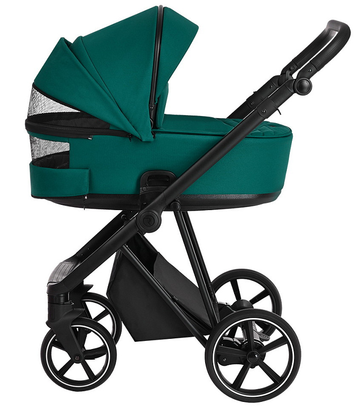 - Отделка внутренней части люльки выполнена из хлопковой натуральной ткани, имеется дополнительный бортик для использования коляски в зимний период