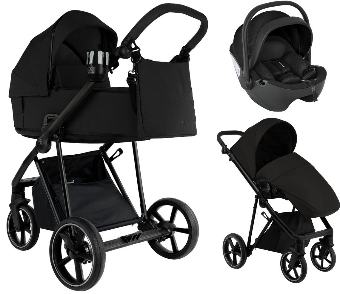 Детская коляска Roan Sol 2.0 3 в 1 с автокреслом Pituso Baesa Pro Black SLL/30/T Caviar Black/Black/руч.Black
