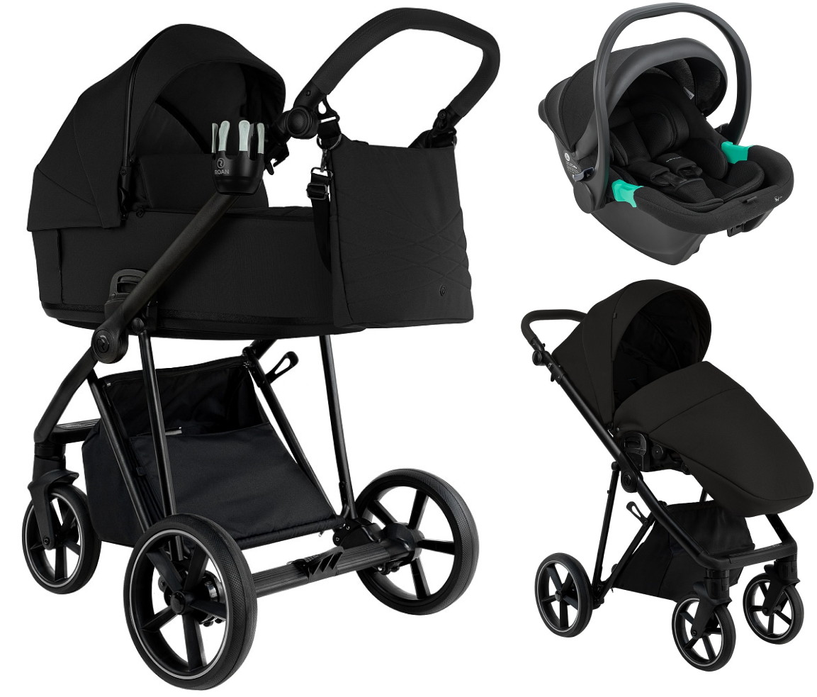 Детская коляска Roan Sol 2.0 3 в 1 с автокреслом Pituso Santiso Pro Black SLL/30/T Caviar Black/Black/руч.Black