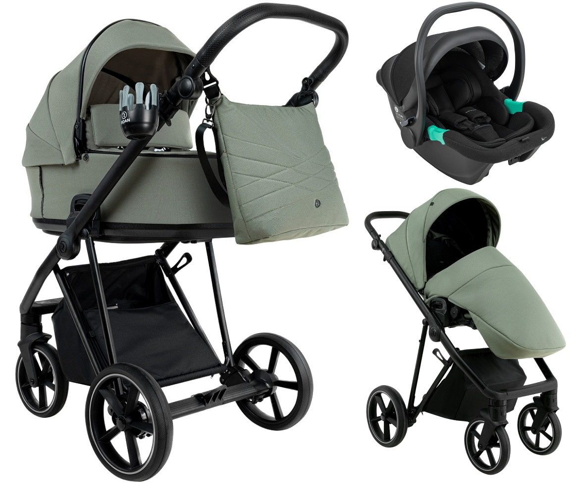 Детская коляска Roan Sol 2.0 3 в 1 с автокреслом Pituso Santiso Pro Black SLL/33/T Sage Green/Black/руч.Black