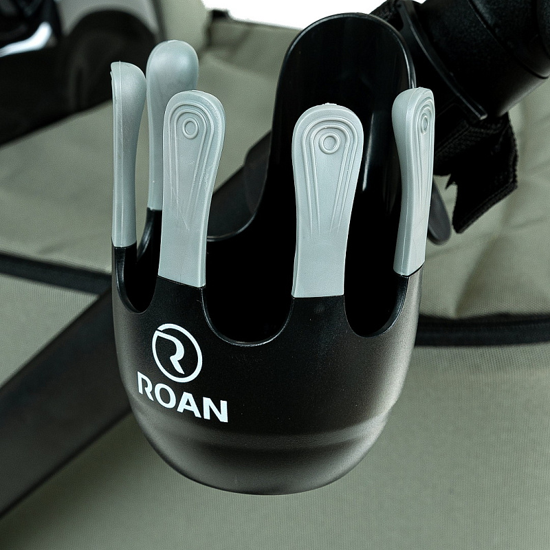 В конструкции рамы производитель Roan применяет собственные разработки деталей (узлов), например, тормозная система, механизм крепления люльки, механизм складывания и др. Это отличает данного производителя колясок от других фирм, которые используют универсальные узлы во всех колясках разных моделей.