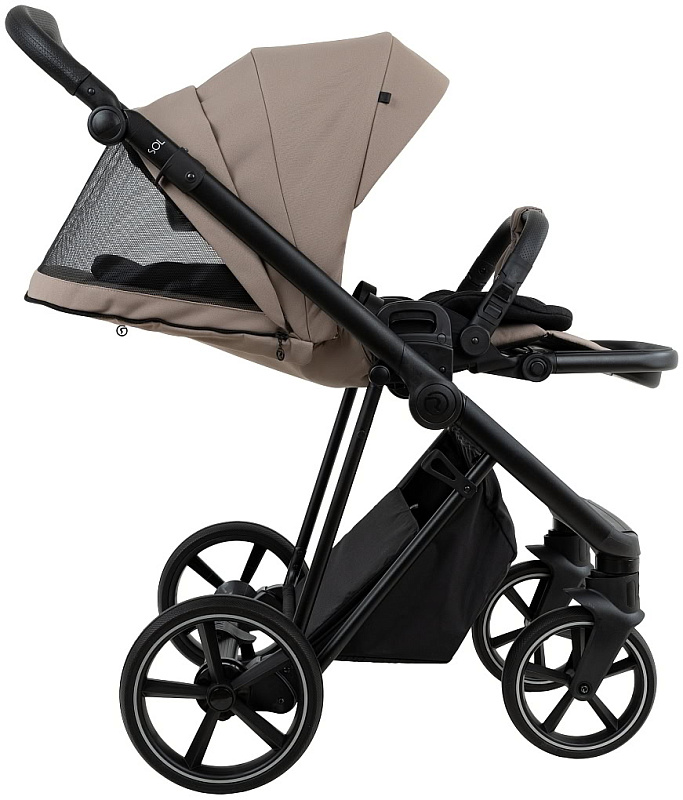 Большая полноразмерная, бескаркасная люлька, предусмотрена глубокая система вентиляции нового поколения «double Air».Отделка внутренней части люльки выполнена из хлопковой натуральной ткани, имеется дополнительный бортик для использования коляски в зимний период. Большой глубокий капор и регулировка капюшона.
