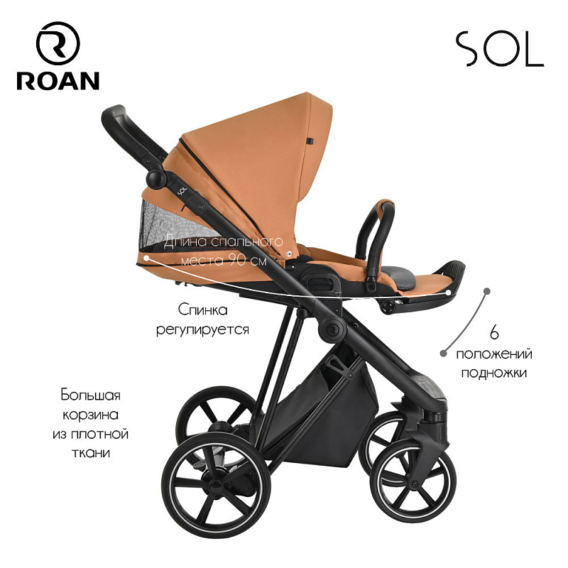Многофункциональная модульная коляска Roan SOL– это детская коляска высокого качества в идеальном исполнении, которое заметно с первого взгляда.