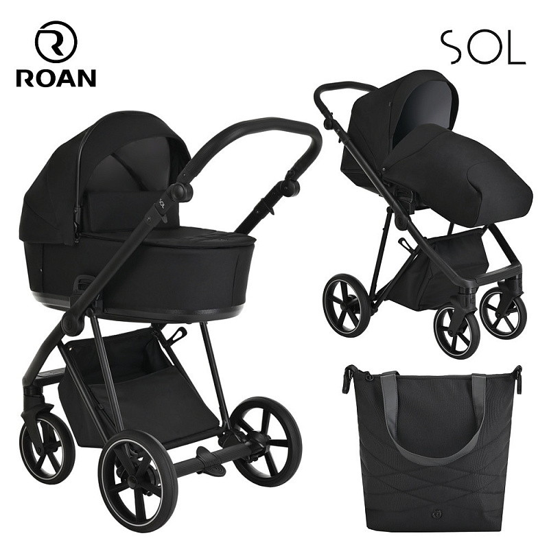 Детская коляска Roan Sol 3 в 1 с автокреслом Tutis Elo Black RSL/1016 True Black