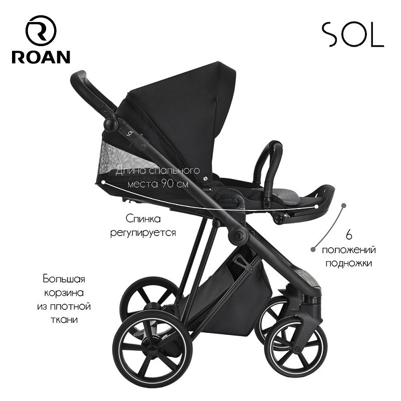 Многофункциональная модульная коляска Roan SOL– это детская коляска высокого качества в идеальном исполнении, которое заметно с первого взгляда.