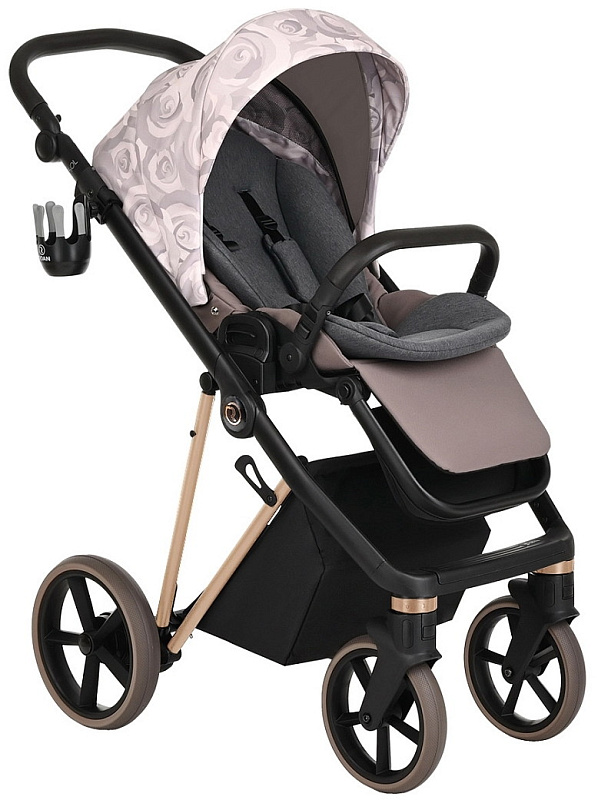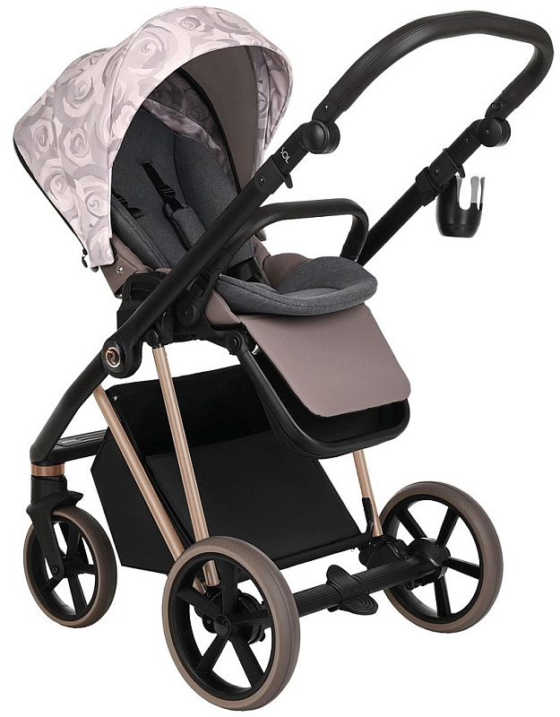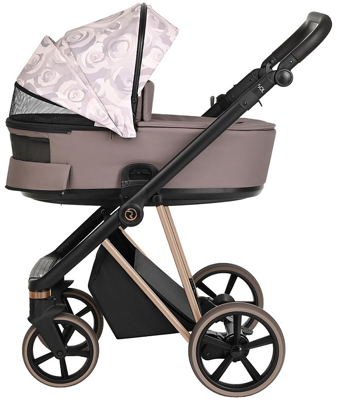 Детская коляска Roan Sol Flowers 3 в 1 с автокреслом Tutis Elo Black RSF/5001 Powder/Rose gold