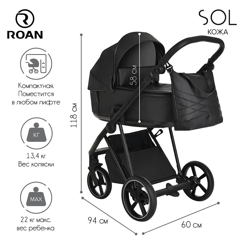 Roan Sol -Eco Кожа - новое поколение коляски, отвечающей самым высоким стандартам дизайна, безопасности и функциональности