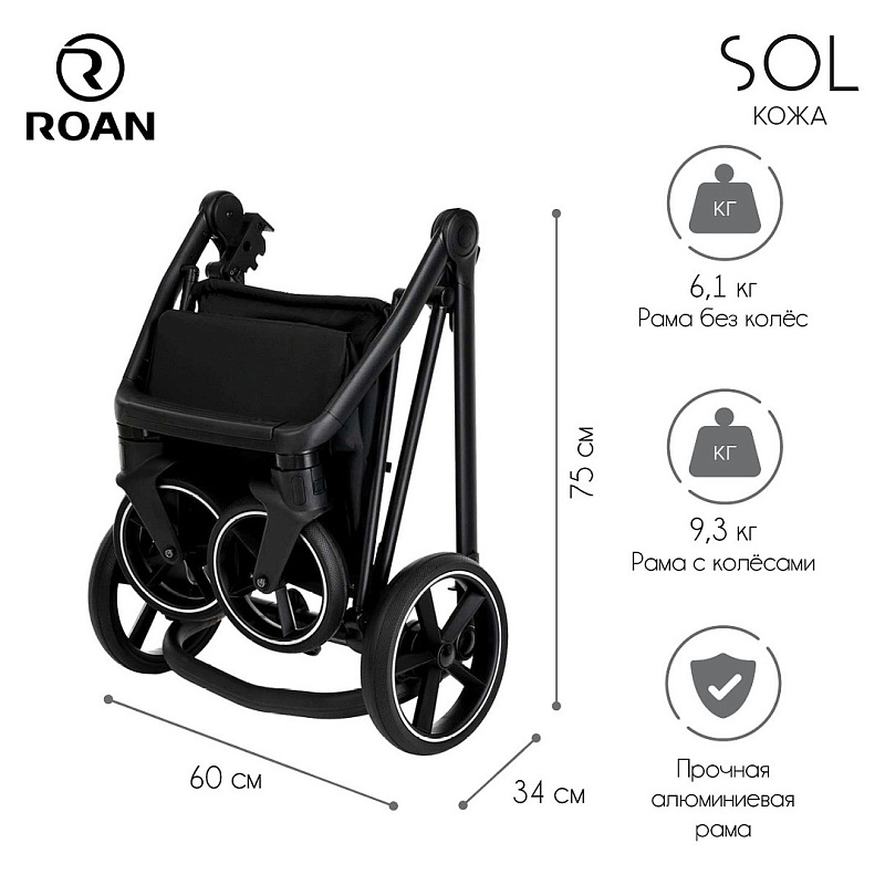 Детская коляска Roan Sol Кожа 3 в 1 с автокреслом Tutis Elo Lux Grey RSL/2027 Black /Black/руч.ЧерныйНет оценокХарактеристики