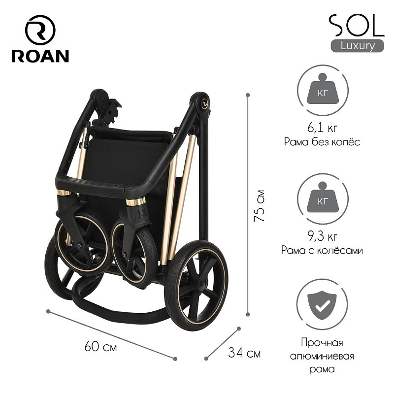 Многофункциональная модульная коляска Roan Sol Luxury– это детская коляска высокого качества в идеальном исполнении, которое заметно с первого взгляда.