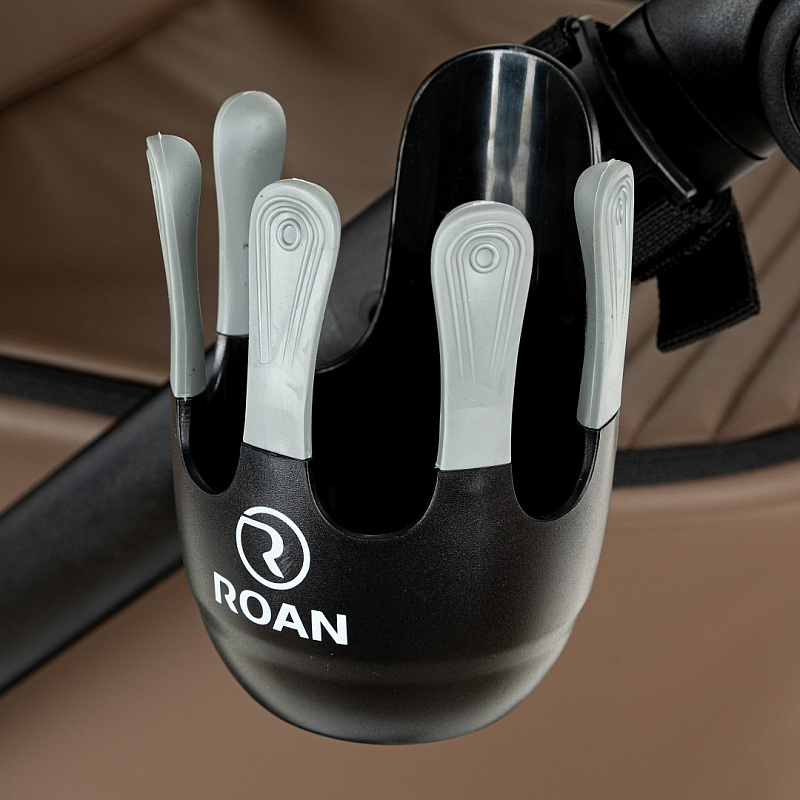 В конструкции рамы производитель Roan применяет собственные разработки деталей (узлов), например, тормозная система, механизм крепления люльки, механизм складывания и др. Это отличает данного производителя колясок от других фирм, которые используют универсальные узлы во всех колясках разных моделей.