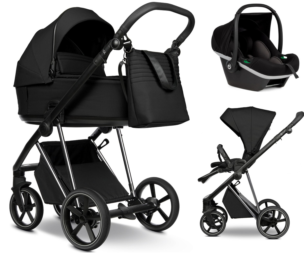 Детская коляска Roan Sol Vintage Luxury 2.0 3 в 1 с автокреслом Tutis Elo Black VIN 05/CB Caviar Black/Nickel/руч.Black