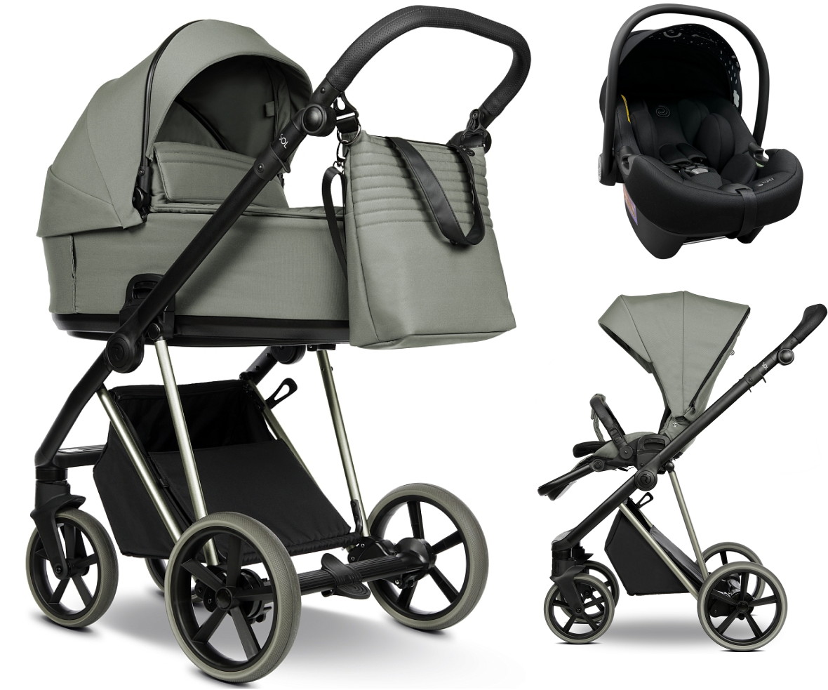 Детская коляска Roan Sol Vintage Luxury 2.0 3 в 1 с автокреслом Tutis Elo Lux EduSky Black VIN 02/SG Sage Green/Sage/руч.Black