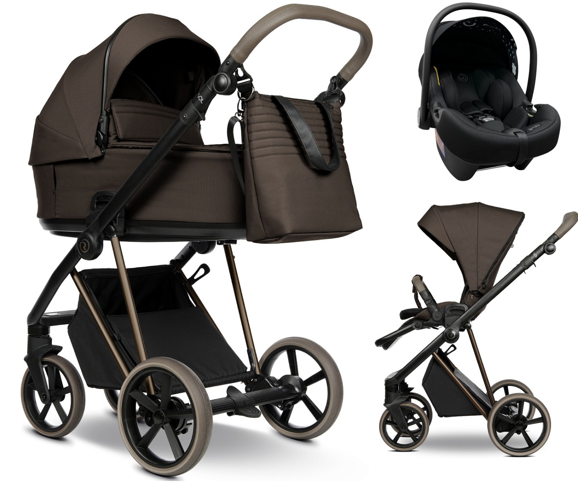 Детская коляска Roan Sol Vintage Luxury 2.0 3 в 1 с автокреслом Tutis Elo Lux EduSky Black VIN 04/TC Turkish Coffe/Bronze/руч.Cappuccino
