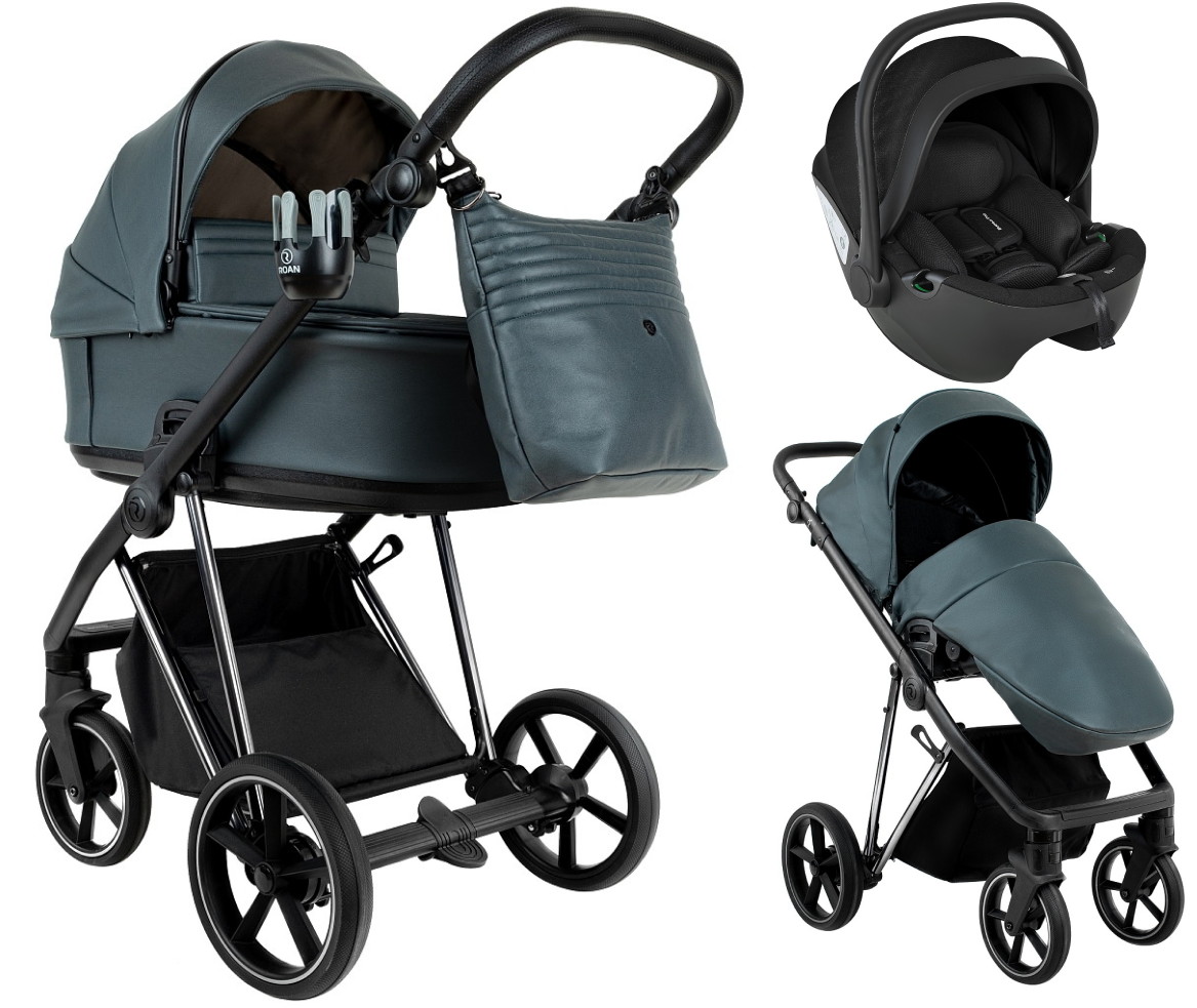 Детская коляска Roan Sol Vintage Luxury Leather 2.0 3 в 1 с автокреслом Pituso Baesa Pro Black VEGA79DB Atlantic Deep/Nickel/руч.Black