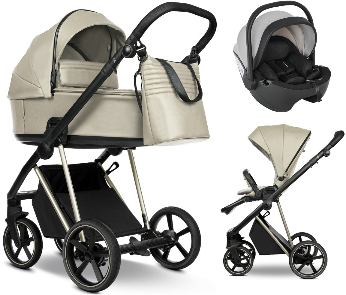 Детская коляска Roan Sol Vintage Luxury Leather 2.0 3 в 1 с автокреслом Pituso Baesa Pro Black,Beige Canopy VEGA11DB Almond Sugar /Champagne/руч.Champagne