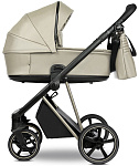 Детская коляска Roan Sol Vintage Luxury Leather 2.0 3 в 1 с автокреслом Tutis Elo Lux EduSky Black VEGA11DB Almond Sugar /Champagne/руч.Champagne