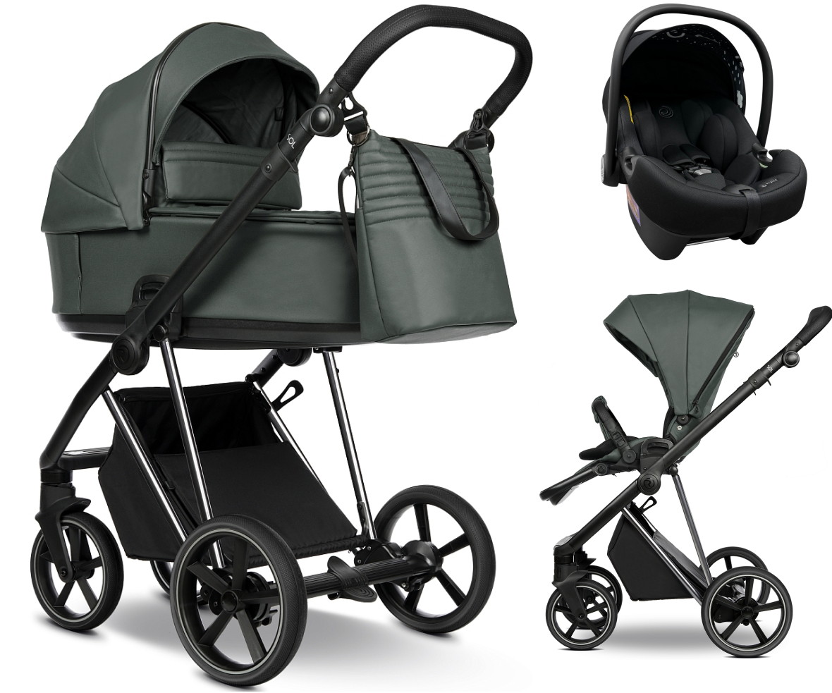 Детская коляска Roan Sol Vintage Luxury Leather 3 в 1 с автокреслом Tutis Elo Lux EduSky Black VEGA79DB Atlantic Deep/Nickel/руч.Black