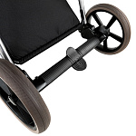 Конструкция рамы имеет амортизатор, специально разработанный для данной модели коляски, который компенсирует неровности дорожного покрытия и делает ход коляски плавным.