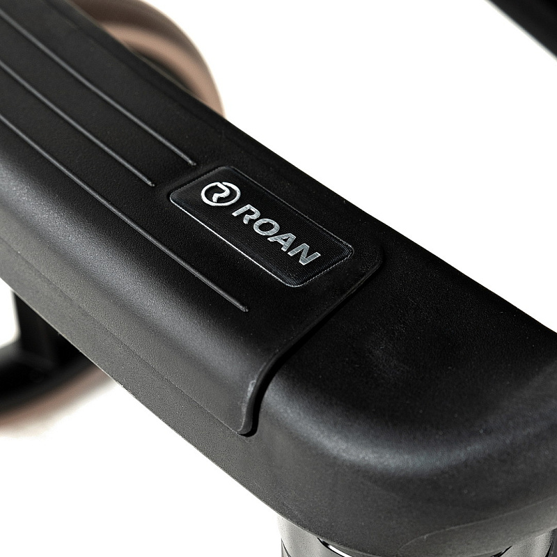 В конструкции рамы производитель Roan применяет собственные разработки деталей (узлов), например, тормозная система, механизм крепления люльки, механизм складывания и др. Это отличает данного производителя колясок от других фирм, которые используют универсальные узлы во всех колясках разных моделей.