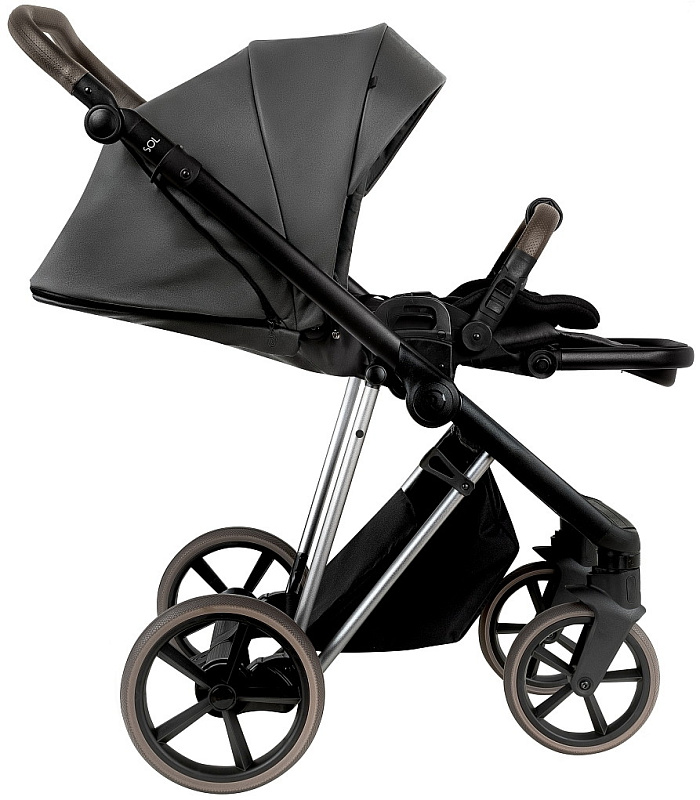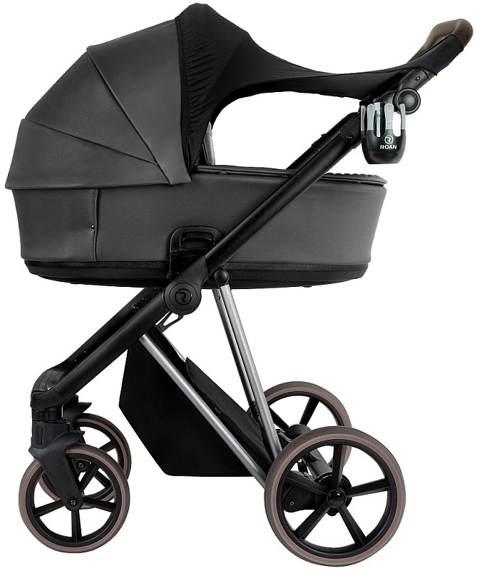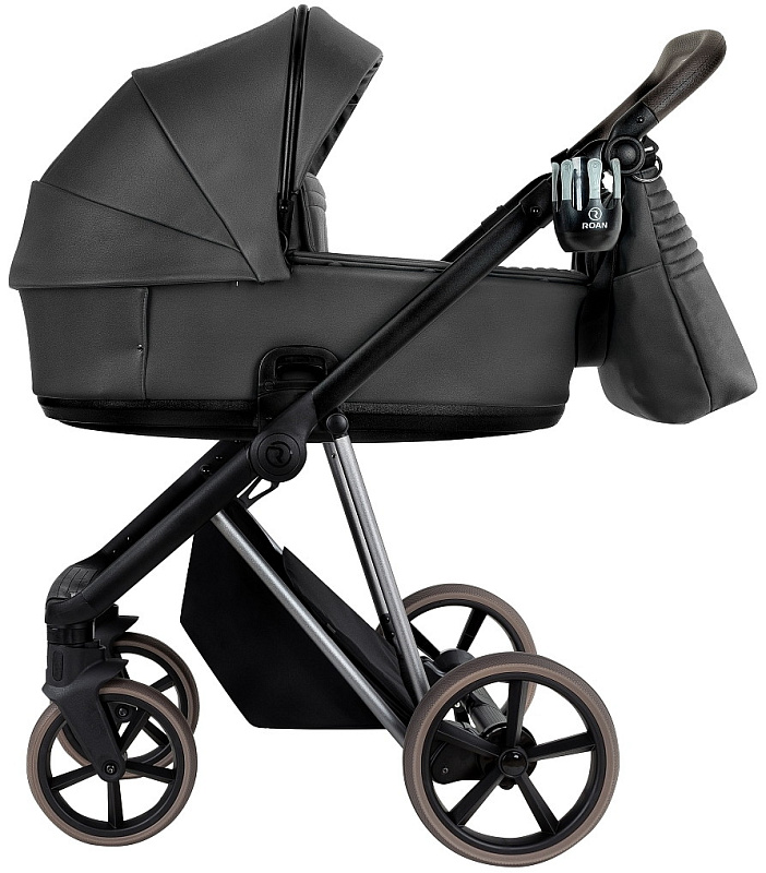 Детская коляска Roan Sol Vintage Luxury Leather 2.0 3 в 1 с автокреслом Tutis Elo Lux EduSky Black VEGA99DB Woodland Gray/Nickel/руч.Cappuccino