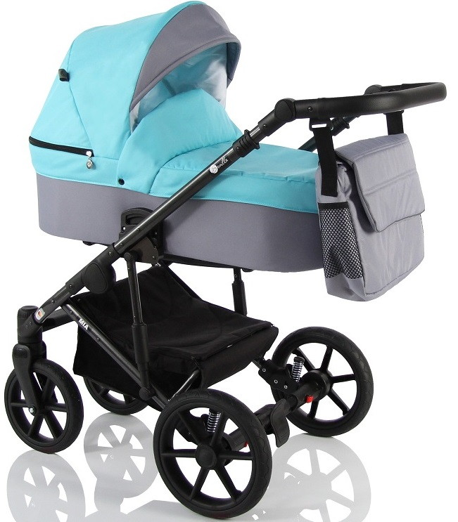 Коляска укомплектована вместительной сумкой для мамы и закрытой корзиной (до 3 кг) для покупок с удобным доступом, москитной сеткой, дождевиком