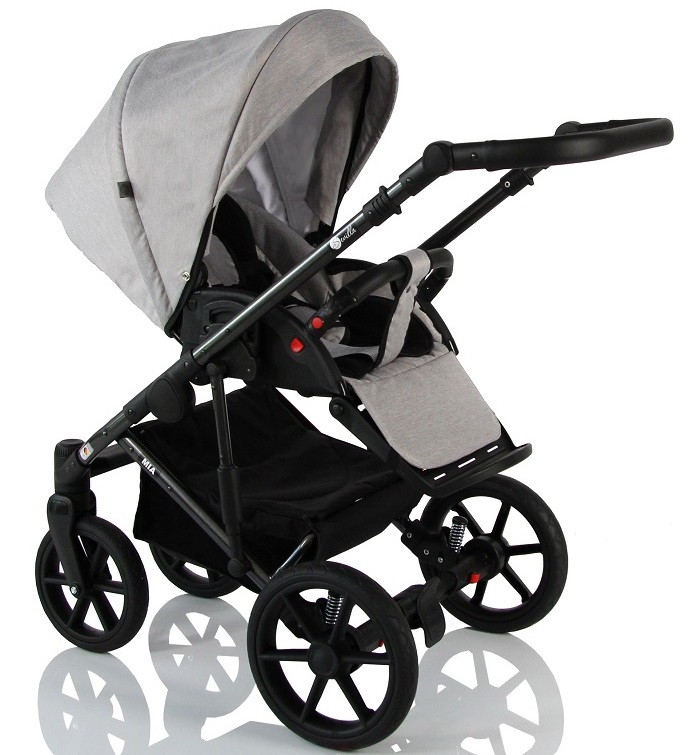 Колеса (GEL) не требующие дополнительного обслуживания. Надёжная тормозная система Easy stop приводится в действие одним лёгким нажатием педали, установленyой в середине задней оси. Благодаря современной системе амортизации и усиленной подвеске с возможностью регулировки жесткости хода, обеспечивается мягкость и плавность движения, поглощая вибрацию при неровностях на дорогах. Функция поворотных передних колёс обеспечивает идеальную маневренность. Для движения по прямой предусмотрена функция фиксации передних колес. Обивка ручки выполнена из эко кожи с функцией регулировки высоты.