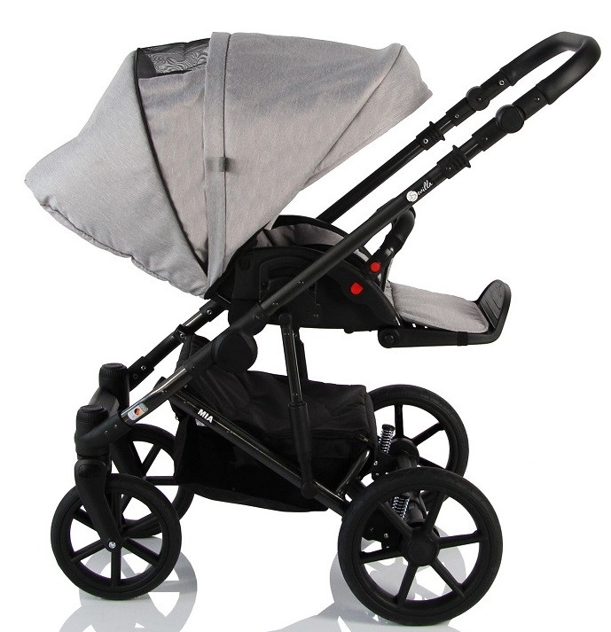 Коляска Sevillababy Mia 2 в 1 имеет функцию сложения рамы вместе с колёсами, которые при желании можно снять. Рама складывается книжкой одним движением, до щелчка фиксатора (замка) рамы. Люлька коляски выполнена из плотной непромокаемой ткани, а внутренняя отделка состоит 100% хлопка. Накидка на люльку с высоким бортиком надёжно защитит малыша от непогоды. Дно люльки – деревянное, с регулирующимся подголовником. Для комфорта малыша в комплект входит матрасик из холлофайбера. На внутренней боковой обшивке люльки имеется карманчик, который можно использовать для питьевой бутылочки.