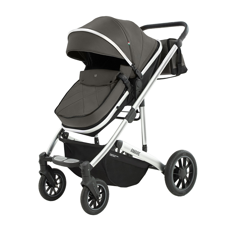 Регулируемые пятиточечные ремни безопасности, ножной тормоз, козырёк от солнца и ветра, большая корзина для покупок и теплый чехол на ножки - все это делает Sweet Baby Amare 3 в 1 не только стильной, но и безопасной и функциональной коляской для вашего малыша.