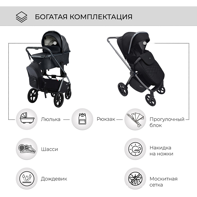 Детская коляска Sweet Baby Elegante 3 в 1 BRD Black