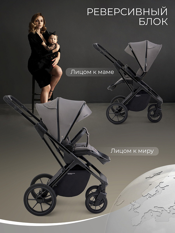 Механическая регулировка спинки доступна в трех положениях. Реверсивный блок позволяет вашему ребенку смотреть и на вас, и на окружающий мир.