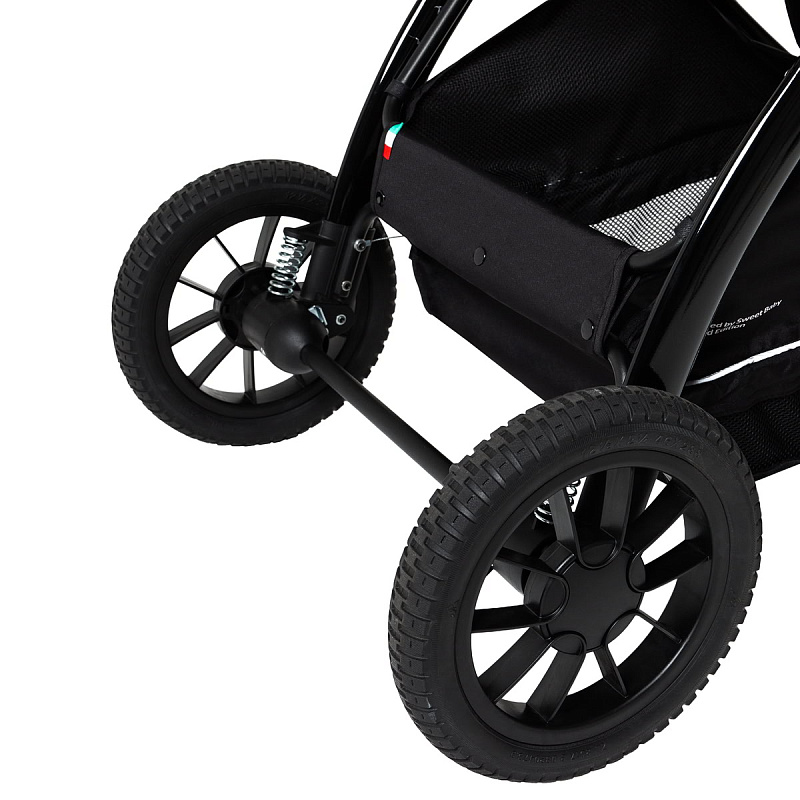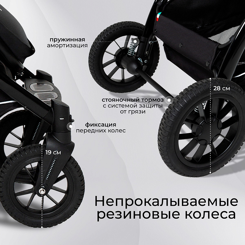 Проверенная надежность: Большие не прокалываемые резиновые колеса и система мягкой пружинной амортизации делают поездку комфортной на любых поверхностях.