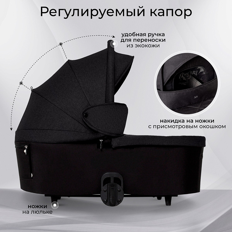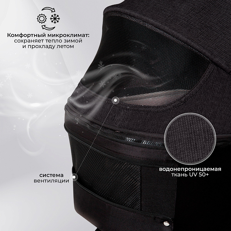 - Защита от непогоды: Глубокий регулируемый капор защитит вашего малыша от солнечных лучей, дождя и ветра, создавая уютную обстановку