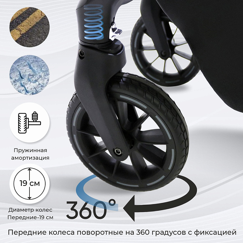 Маневренность и удобство управления, благодаря поворотным на 360° передним колесам;