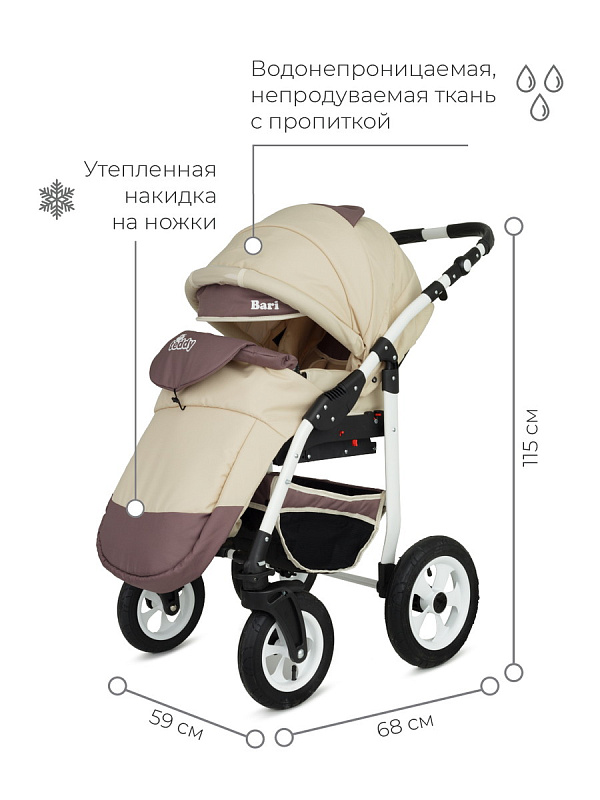 Отменного качества изделие станет любимым транспортом ребятишкам возрастной категории: с первых дней жизни и будет использоваться долгий период. Модель оснащена множеством полезных опций, способных предоставить крохе уют и безопасность в любую погоду. Чтобы коляску Teddy (BartPlast) Bari 2 в 1 купить – достаточно подать заявку онлайн или телефонном режиме.