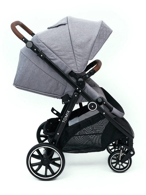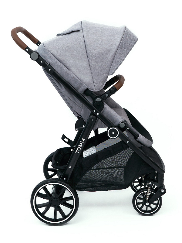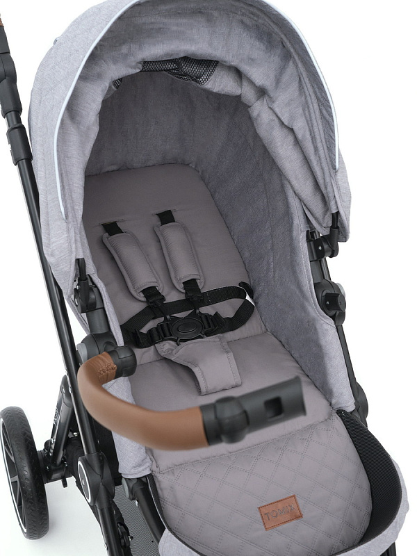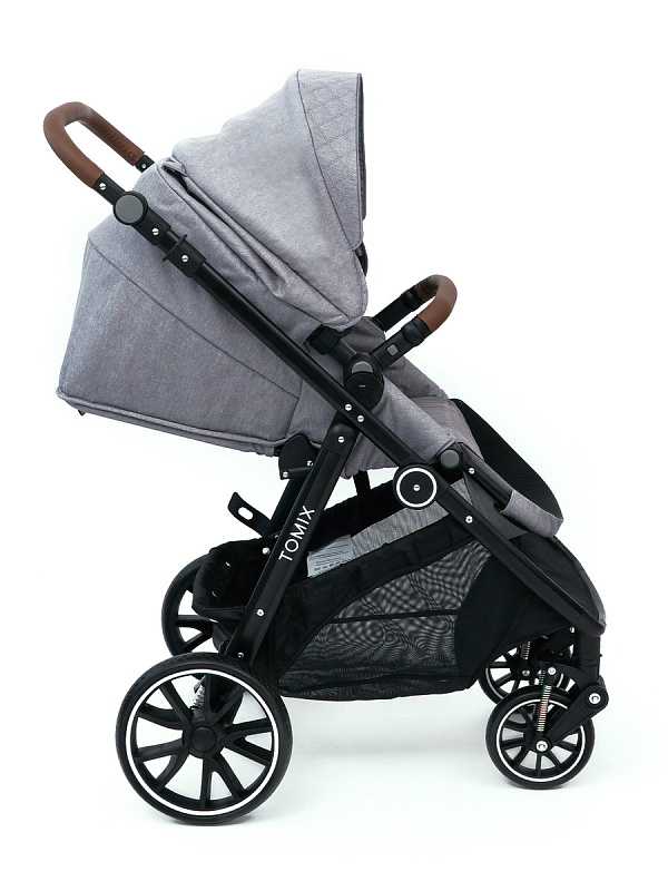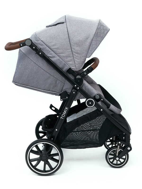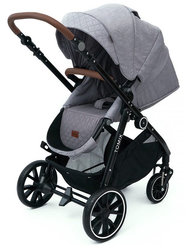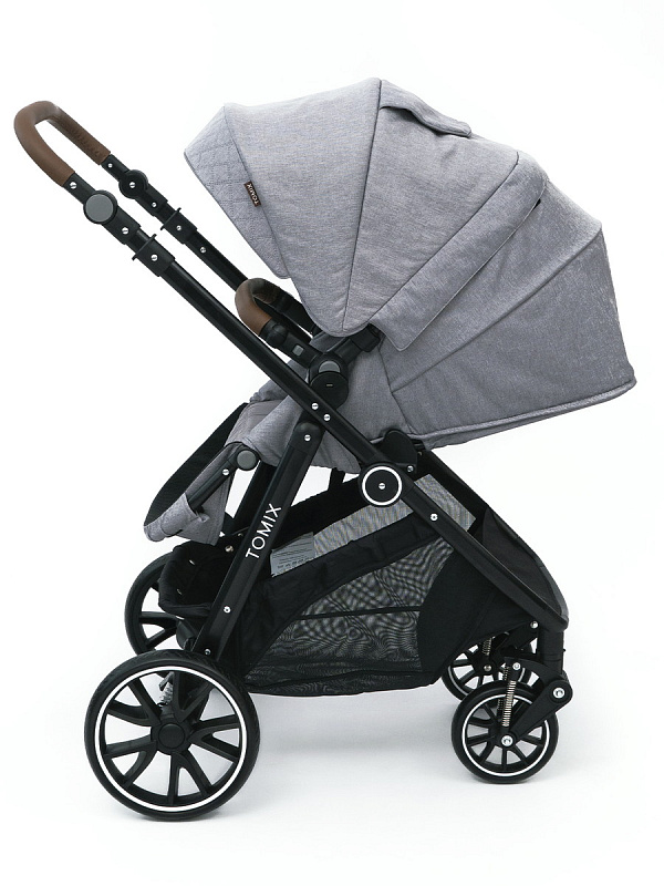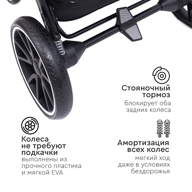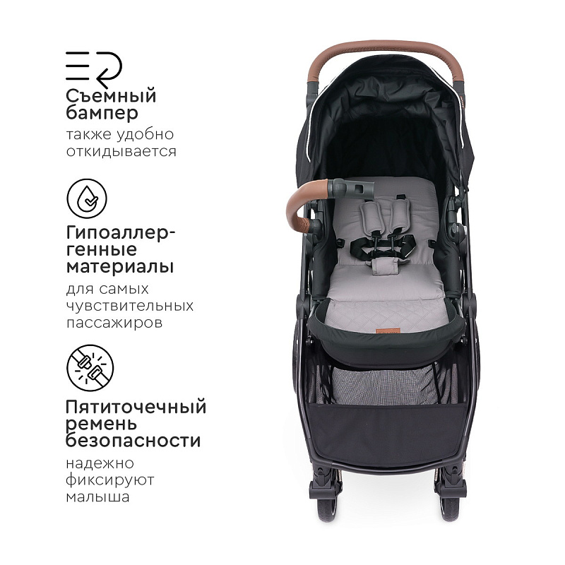 - регулируемая по высоте родительская ручка из экокожи имеет 4 положения (115, 106, 100 и 88 см от пола)