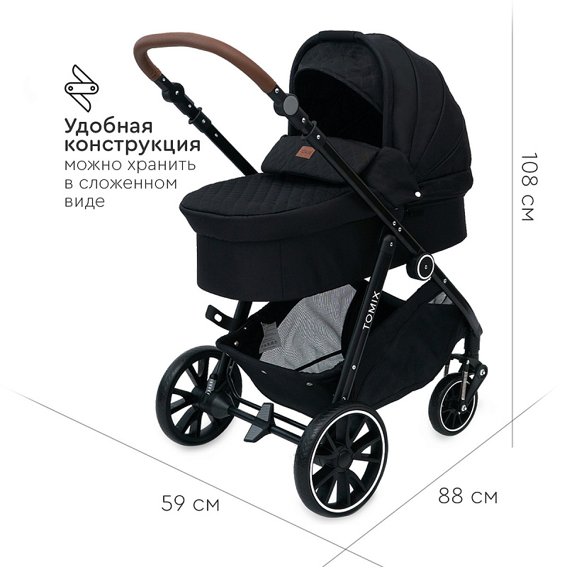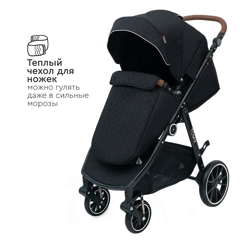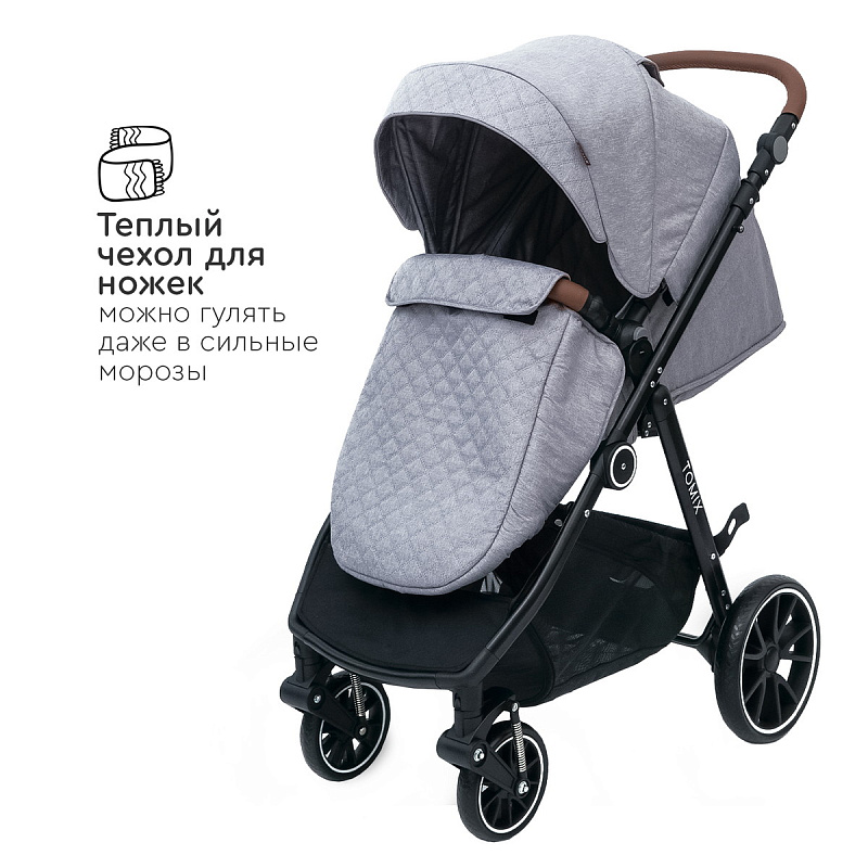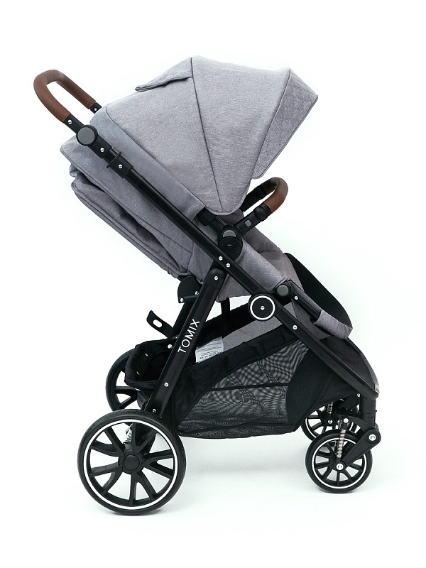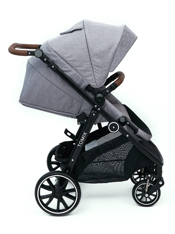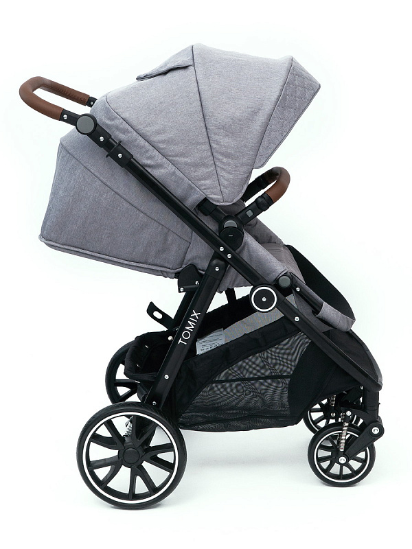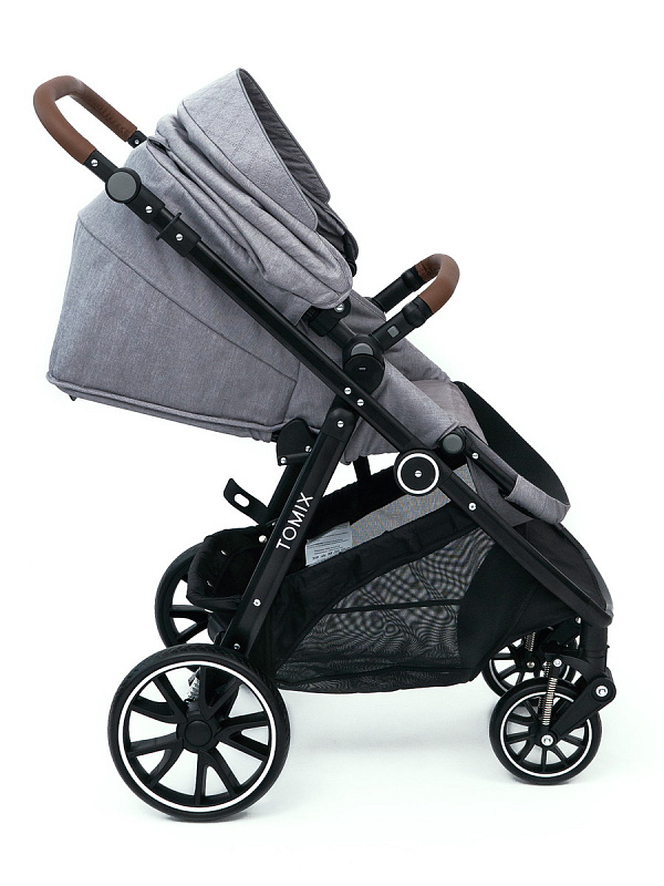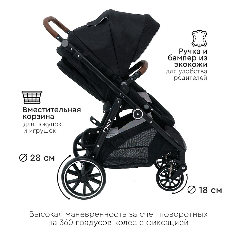 - регулируемая по высоте родительская ручка из экокожи имеет 4 положения (115, 106, 100 и 88 см от пола)