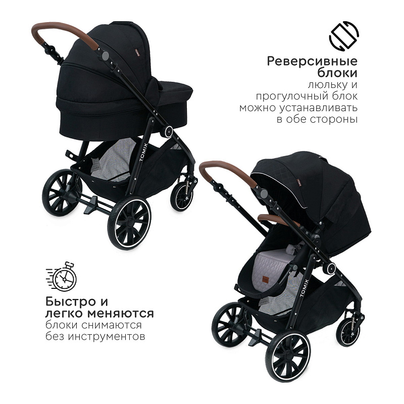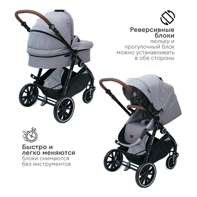 Функциональная модель с лаконичным современным дизайном понравится родителям и их малышам! Коляска включает 2 отдельных блока: люльку и прогулочный блок, который можно устанавливать по ходу или против движения.