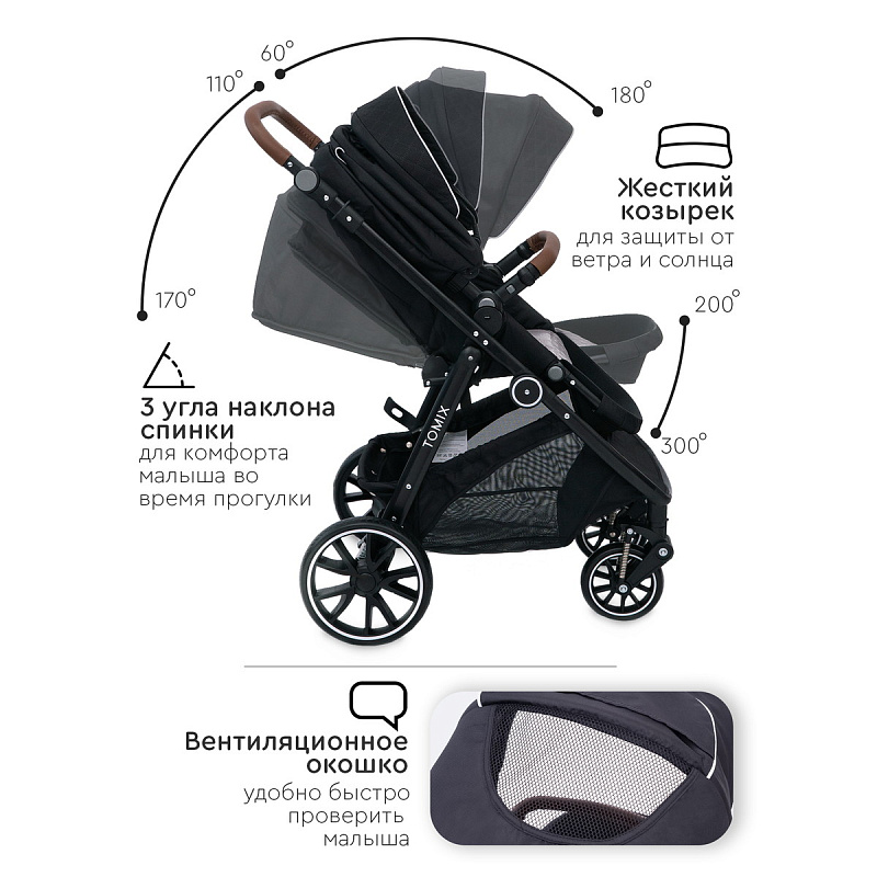 - 3 положения наклона спинки до 170 градусов (спальное место 85 см)
