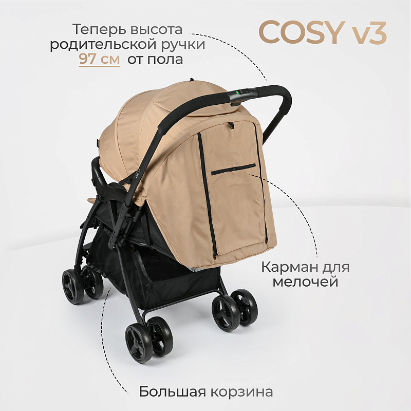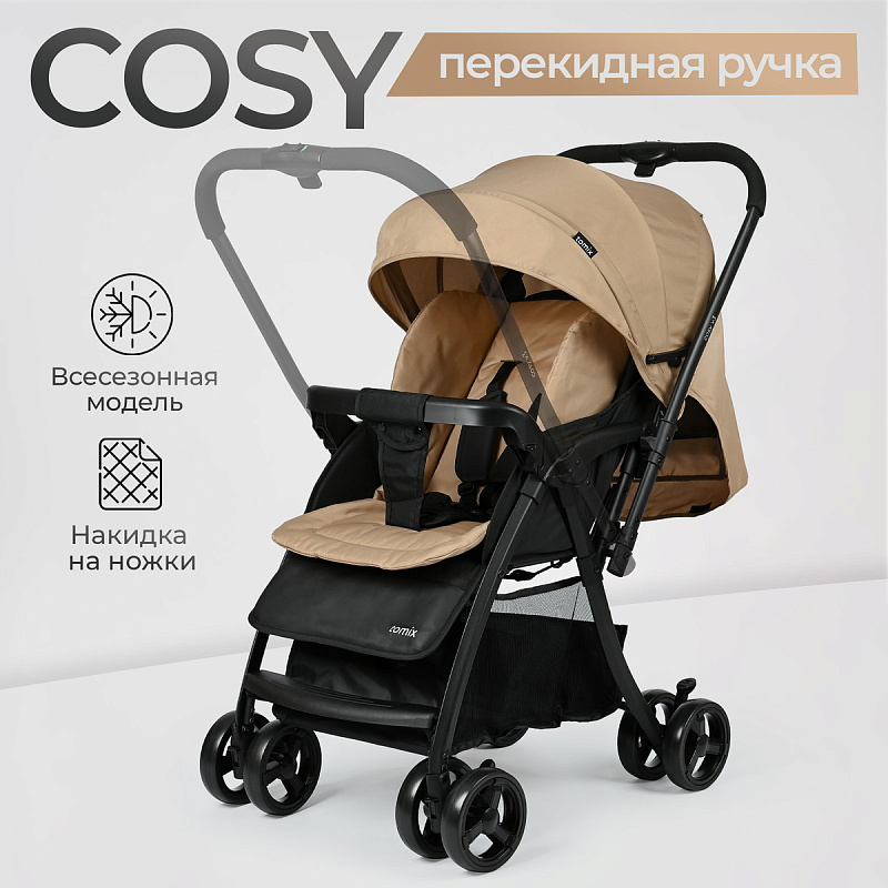 Обновлённая модель коляски Tomix Cosy V3 с перекидной ручкой — идеальный транспорт для вашего малыша. Благодаря перекидной ручке вы можете менять направление движения коляски прямо во время прогулки, защищая ребёнка от ветра и дождя. Увеличенный капюшон и тёплый чехол для ног делают эту коляску подходящей для любого сезона.