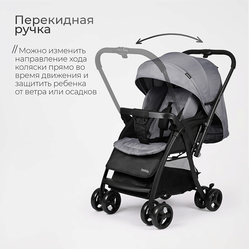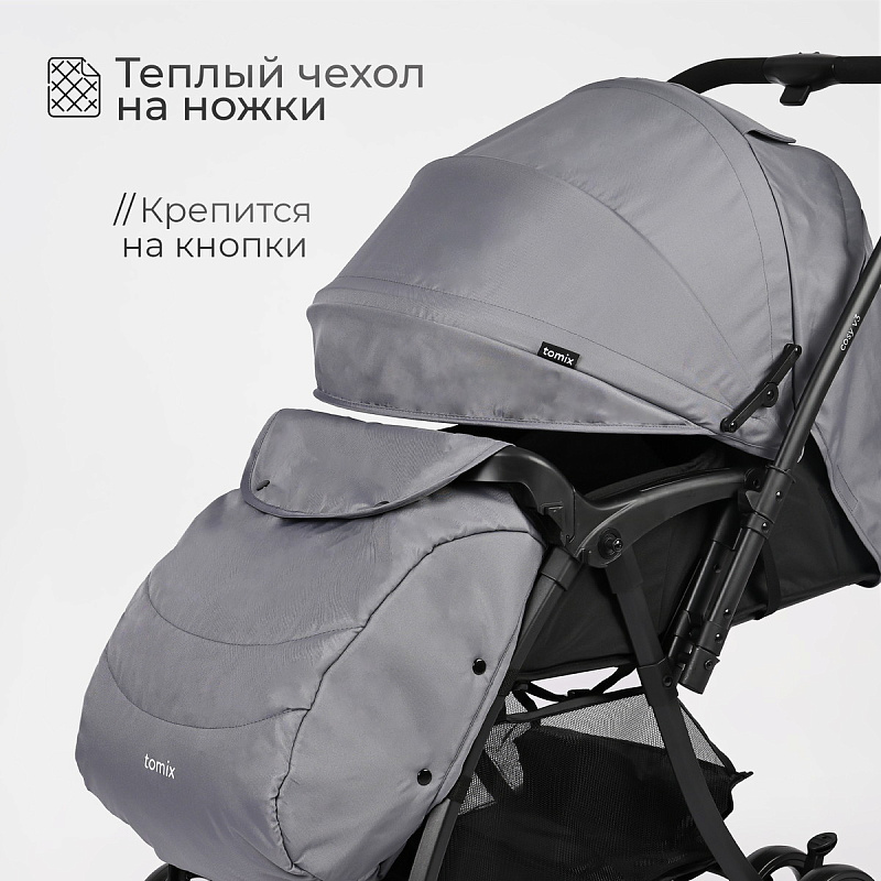 Обновлённая модель коляски Tomix Cosy V3 с перекидной ручкой — идеальный транспорт для вашего малыша. Благодаря перекидной ручке вы можете менять направление движения коляски прямо во время прогулки, защищая ребёнка от ветра и дождя. Увеличенный капюшон и тёплый чехол для ног делают эту коляску подходящей для любого сезона.