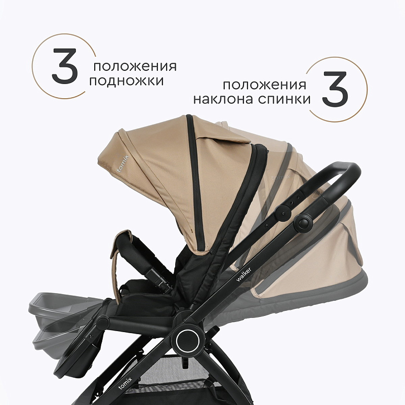 Tomix Walker — это удобная и функциональная детская коляска 2 в 1, которая станет надежным спутником вашего малыша с самого рождения и до тех пор, пока он не научится уверенно ходить.