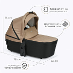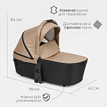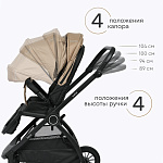 Легкая и прочная алюминиевая рама гарантирует, что вы сможете без труда управлять коляской на любой местности. Она оснащена модульной системой, включающей в себя люльку и прогулочный блок, которые легко устанавливаются и снимаются по мере роста ребенка. Регулируемая ручка подстраивается под любой рост родителей!