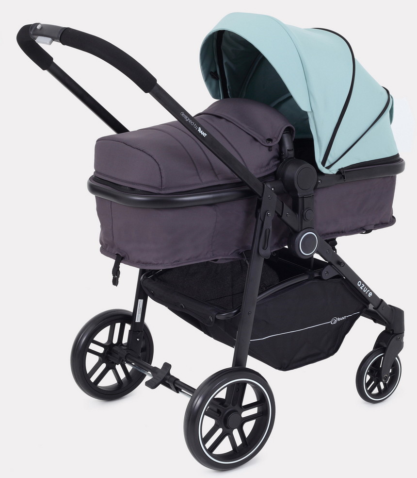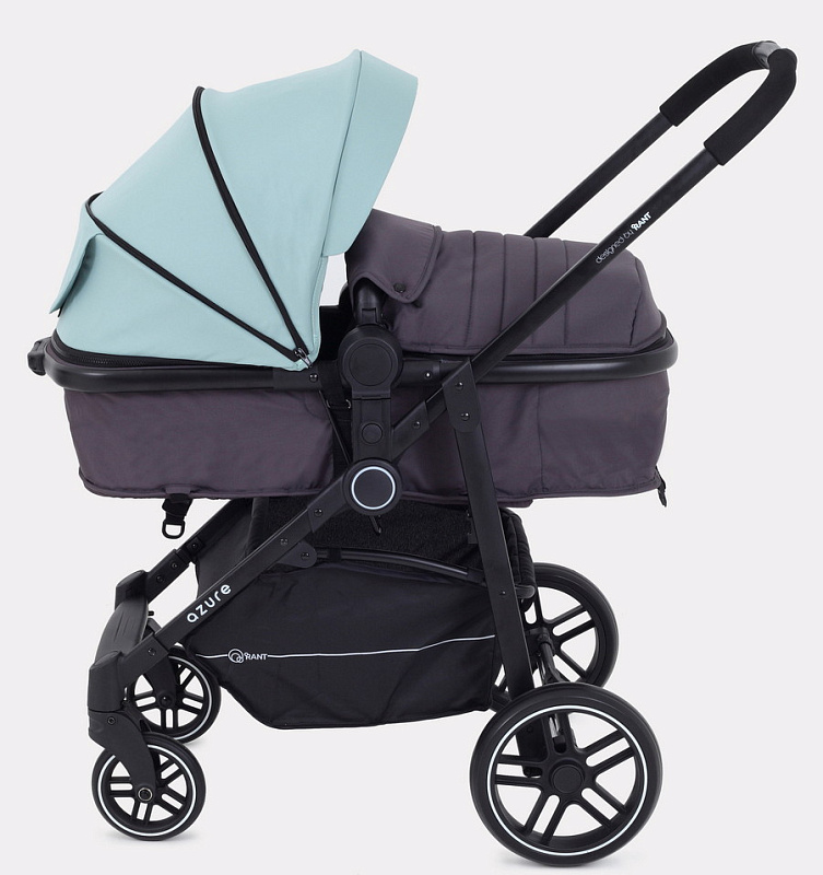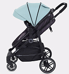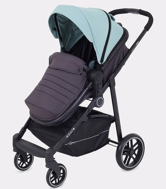 Лёгкая коляска-трансформер дополнена просторной корзиной для покупок. Чехлы выполнены из плотной ткани, защищенной от грязи, влаги и выгорания. Коленчатая амортизация на двух колёсах, передние колёса фиксируются.