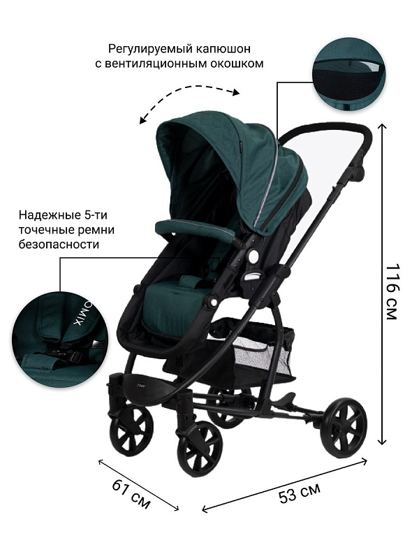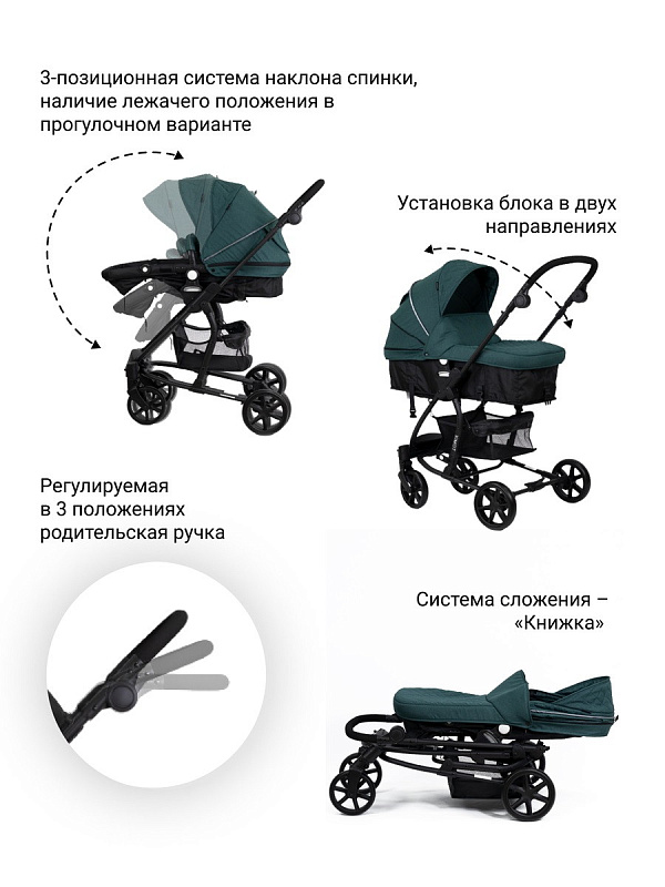 - 3-позиционная система наклона спинки, наличие лежачего положения в прогулочном варианте