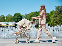 Современный дизайн и продуманные функции коляски CINDY подарят удовольствие от прогулки маме и малышу. Cолнцезащитный козырек опускается до съемного бампера, спинка регулируется в трех положениях, амортизация на передних и задних колесах, пятиточечные ремни безопасности с мягкими накладками. Горизонтальный наклон спинки и регулируемая подножка позволят малышу отдохнуть на свежем воздухе. Передние поворотные колеса с возможностью фиксации обеспечат прекрасную маневренность, а тормозной механизм на задних колесах надежно зафиксирует коляску. Благодаря компактному размеру в сложенном виде и удобной ручке для переноски, коляску можно взять с собой в путешествие.