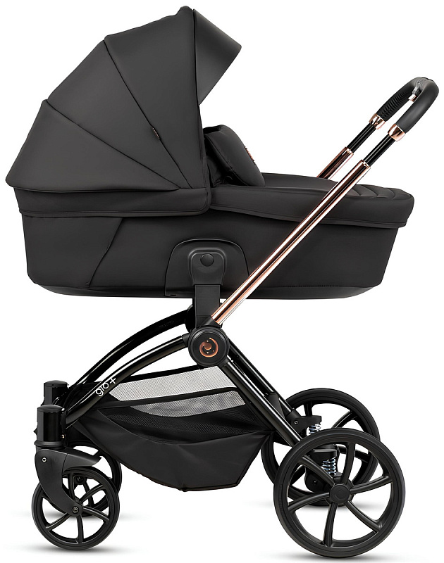 Просторную и продуманную колыбель Tutis Gio+ можно установить выше или ниже на шасси с помощью адаптеров высоты, в зависимости от роста и предпочтений родителя. Люлька отличается своими характеристиками и инновационными разработками, которые производитель использует в производстве именно этой модели. Люлька легко снимается с шасси, её можно переносить за ручку на капюшоне. Дно колыбели покатое, поэтому на полу её можно укачивать.