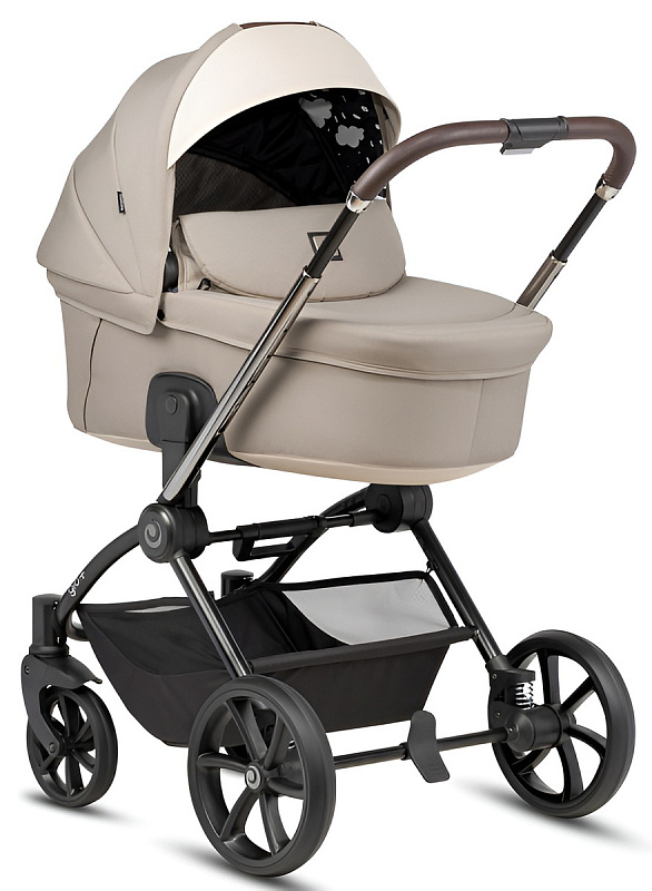 Tutis Gio+Просторную и продуманную колыбель Tutis Gio+ можно установить выше или ниже на шасси с помощью адаптеров высоты, в зависимости от роста и предпочтений родителя. Люлька отличается своими характеристиками и инновационными разработками, которые производитель использует в производстве именно этой модели. Люлька легко снимается с шасси, её можно переносить за ручку на капюшоне. Дно колыбели покатое, поэтому на полу её можно укачивать.